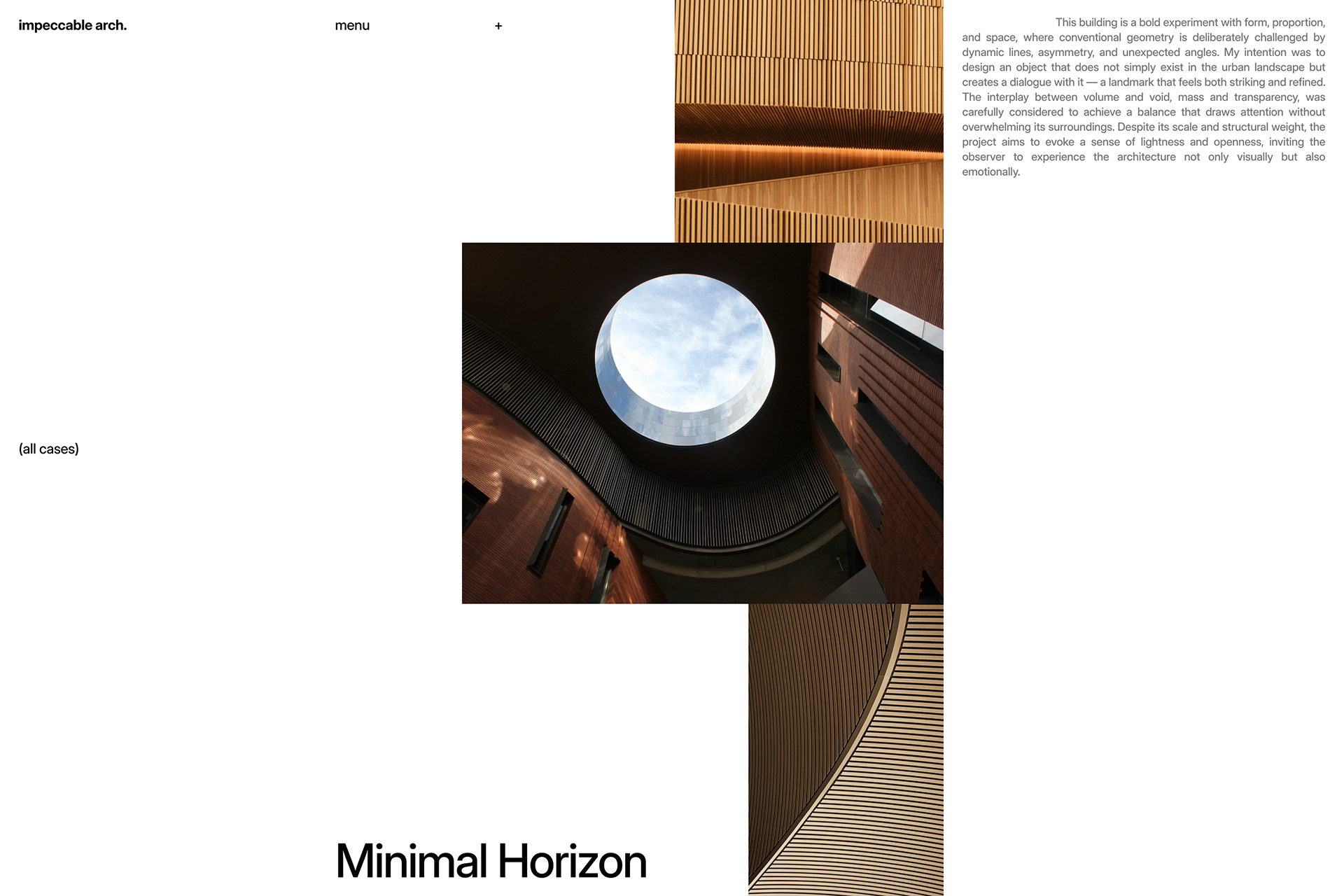 The architectural firm’s website design highlights the uniqueness of its projects and the company’s minimalist style, creating a visually striking yet user-friendly interface. The focus is on showcasing architectural works through large visuals, clean lines, and a well-structured presentation of information.